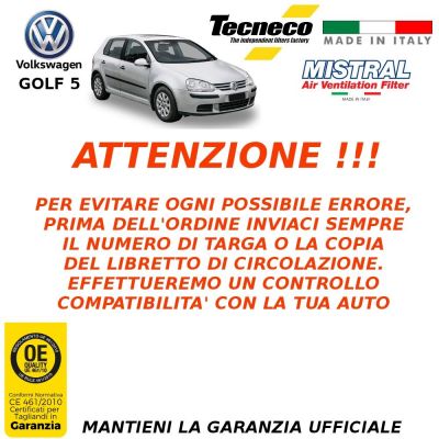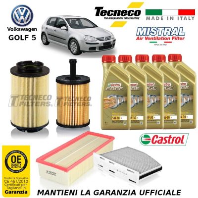 KIT TAGLIANDO VW GOLF 5 V 1.9 TDI 105CV 77KW 03>07 + OLIO CASTROL 5W30