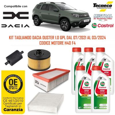 KIT TAGLIANDO 4 FILTRI + OLIO DACIA DUSTER 1.0 GPL 74KW H4DF4 2021>2024