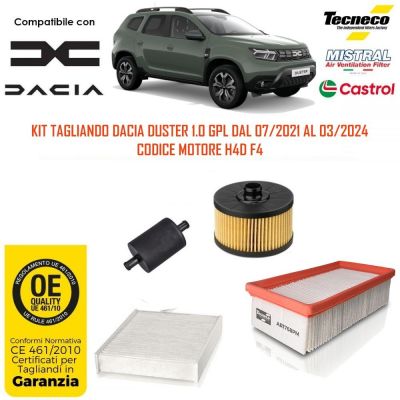 KIT TAGLIANDO 4 FILTRI DACIA DUSTER 1.0 GPL 74KW 101CV H4DF4 2021-2024