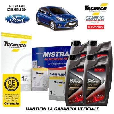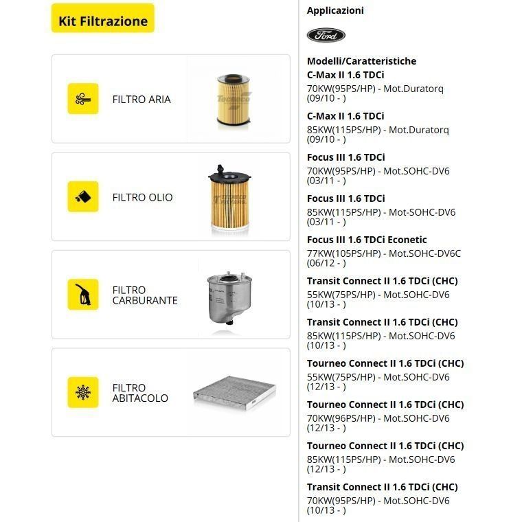 KIT TAGLIANDO FILTRI E OLIO PER FORD CMAX C-MAX 1.6 TDCI T1DA T1DB 08/2010-03/2015
