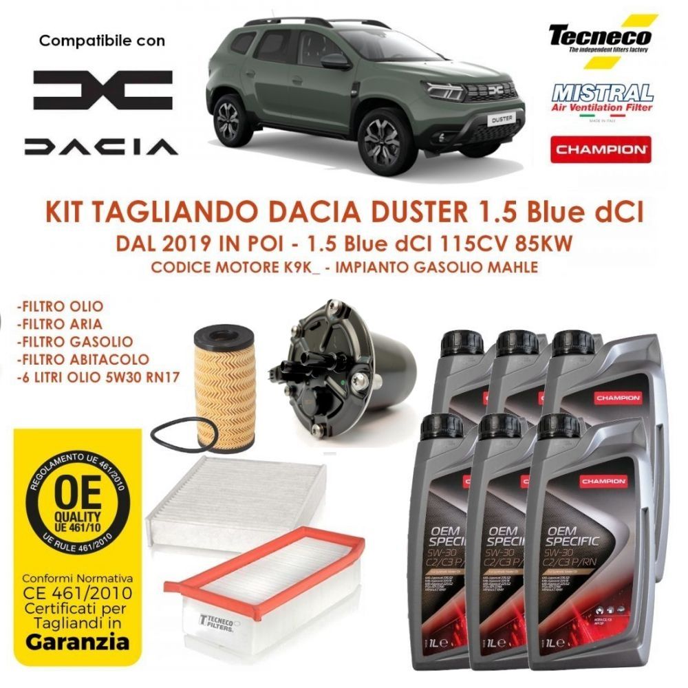 KIT TAGLIANDO DACIA DUSTER 1.5 Blue dCi 115CV 85KW K9K DAL 2019 IN POI