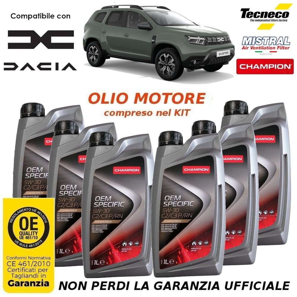 KIT TAGLIANDO+OLIO DACIA DUSTER 1.5 Blue dCi 115CV 85KW K9K DAL 2019 GS1206