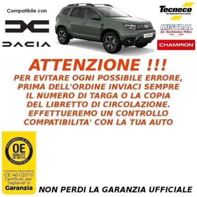 PER DACIA DUSTER 1.5 Blue dCi 115CV 85KW K9K - CON IMPIANTO DIESEL MAHLE